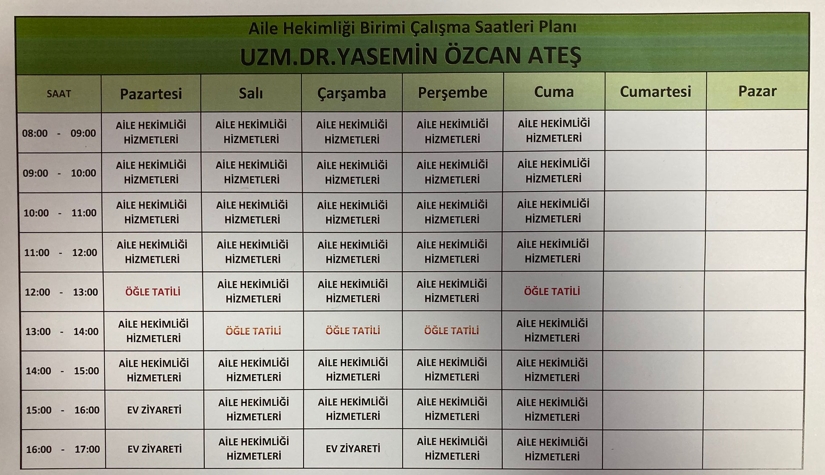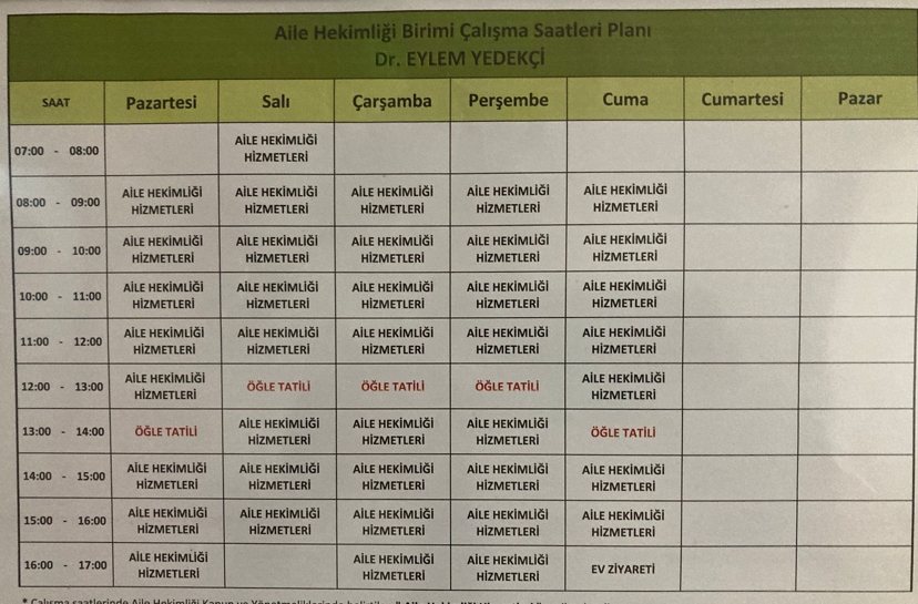Hafta içi her gün: 07:00 - 18:00 saatleri arasındadır